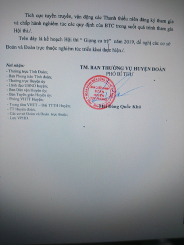 THÔNG BÁO Huyện đoàn Tuy Phong tổ chức Hội thi "Giọng ca trẻ" năm 2019. Đối tượng là thanh thiếu niên từ 16 đến 35 tuổi. Ngay từ bây giờ các bạn ĐVTN thị trấn Liên Hương hãy liên hệ Đoàn thị trấn để đăng ký các tiết mục. SĐT liên hệ: A. Reo: 0988.303837; C. Tuyền: 0369.411.354; hoặc qua trang facebook Đoàn Liên Hương để được đăng ký.
